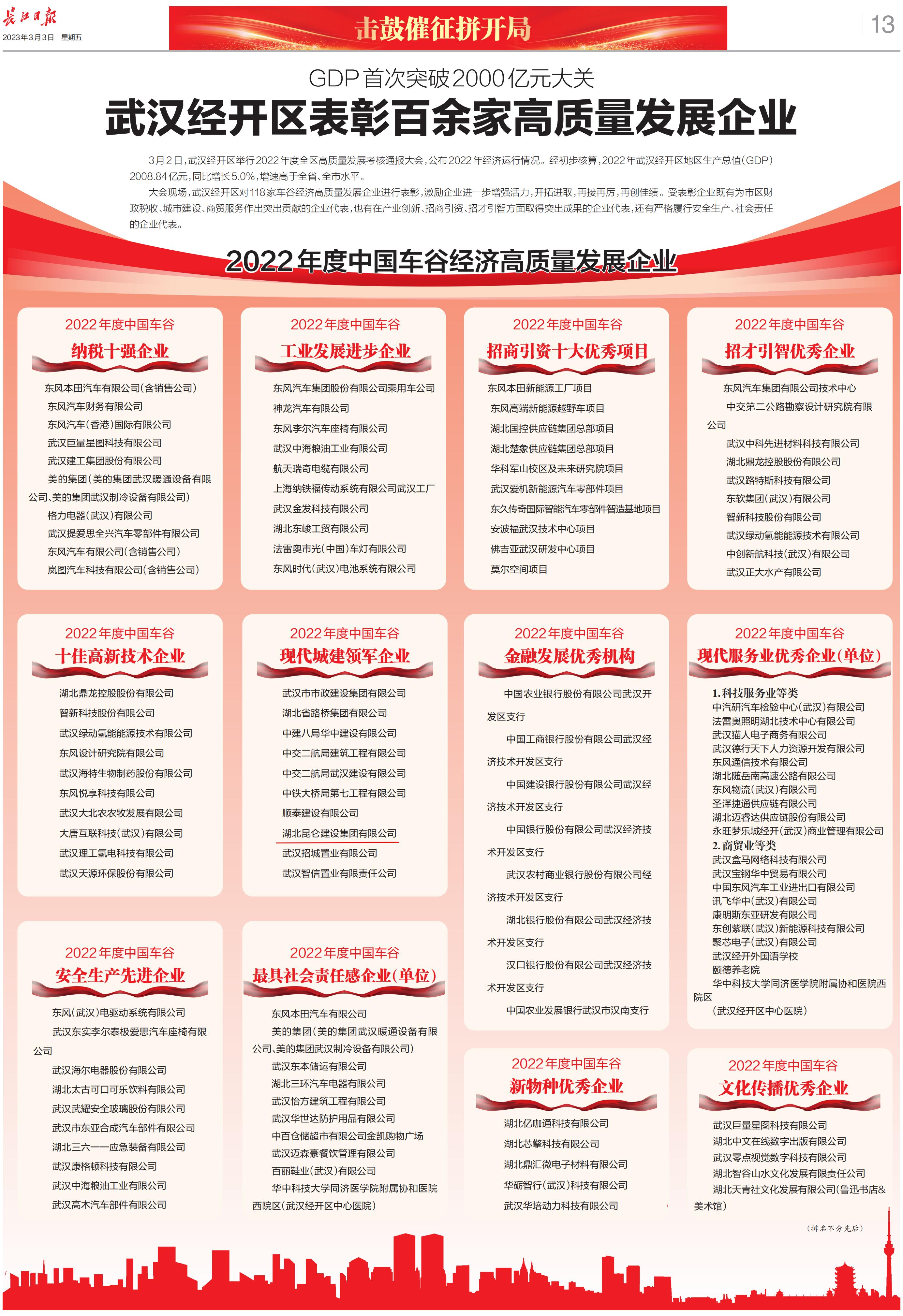 2022年昆侖集團榮登武漢經(jīng)開區(qū)高質(zhì)量發(fā)展企業(yè)(...